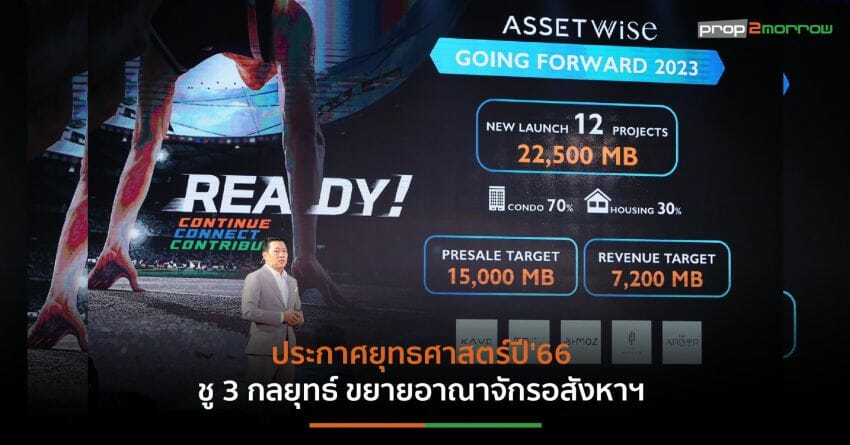 “แอสเซทไวส์” ประเดิมศักราชใหม่ปี’ 66 เดินหน้าเปิด 12 โครงการใหม่ มูลค่าโครงการรวมกว่า 22,500 ล้านบาท ชู 3 กุญแจสำคัญ เผยอาจมีโครงการที่ 13 ทำเลระยอง รอลุ้นความชัดเจนผังEEC ทั้งปักธงผุดคอนโดฯรอบมหาวิทยาลัย โดยเฉพาะมธ.-มกท.ฐานกำลังซื้อสูงและต่อเนื่อง พร้อมจับมือพันธมิตรขยายอาณาจักรอสังหาฯ เสริมแกร่ง-รุกธุรกิจใหม่รองรับไลฟ์สไตล์ ตอบแทนสิ่งที่ดีสู่สังคม เพื่อการเติบโตที่มั่นคง-ยั่งยืน ตั้งเป้าโกยยอดขายปีนี้กว่า 15,000 ล้านบาท รับรู้รายได้ 7,200 ล้านบาท