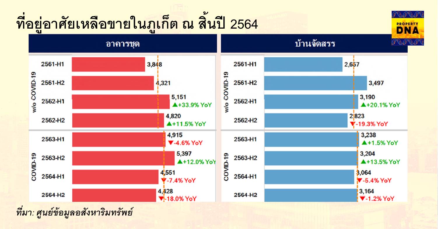 จากข้อมูลของศูนย์ข้อมูลอสังหาริมทรัพย์ล่าสุด ระบุว่า บ้านจัดสรรและคอนโดมิเนียมเหลือขายในภูเก็ต
