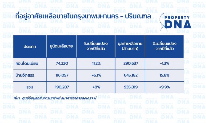 คอนโดมิเนียมเหลือขายในกรุงเทพมหานคร – ปริมณฑล 74,230 ยูนิต เพิ่มขึ้น 11.2% มูลค่ารวมกว่า 290,637 ล้านบาท ลดลง 1.3%